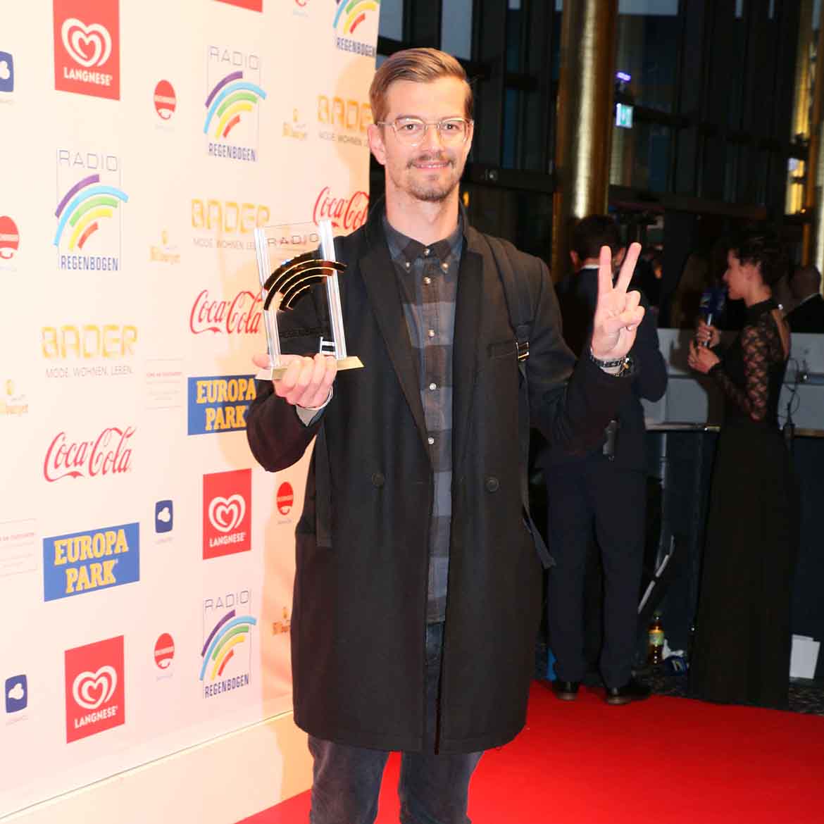 Max Giesinger stürmte mit seinem Mega-Hit „80 Millionen“ 2016 kontinuierlich die Hitparaden – und riss damit auch das Publikum in der neuen Europa-Park Arena mit. Als „Newcomer National“ erhielt er den Radio RegenbogenAward 2016 aus den Händen von Marie Bäumer. Max Giesinger: „Radio Regenbogen war der erste Radiosender, den ich gehört habe – schon als Kind.“ Er freute sich besonders, zurück in seiner Heimat Baden zusein: „Endlich kann ich wieder Dialekt reden. Den Badener bekommt man aus mir einfach nicht raus.“